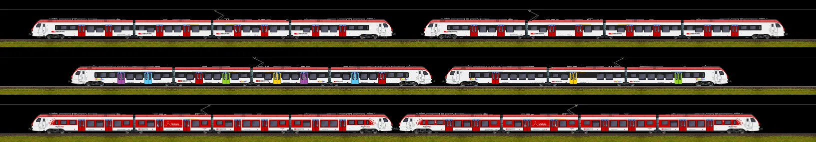 In den letzten Monaten habe ich mich ausführlich mit den SBB Flirt beschäftigt. Entstanden sind die Versionen für die S-Bahn Waadt sowie TILO. Ebenfalls enthalten sind die Fernverkehrsflirt mit dem Übernamen "Mouette"